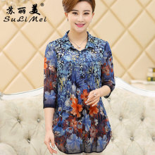 苏丽美夏装新款大码妈妈装弹力碎花衬衣七分袖T恤 中老年女装衬衫