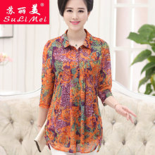 中老年女装春装大码衬衫40-50岁中年女衬衣妈妈装夏季印花t恤上衣