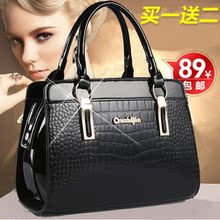 女包2017简约新款潮欧美中年女士大包亮皮鳄鱼纹手提单肩斜挎包包