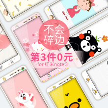 红米note3钢化膜防爆卡通可爱红米note3手机钢化膜彩膜软边全屏前
