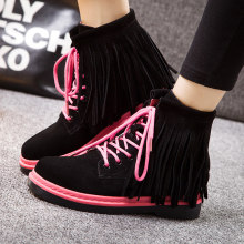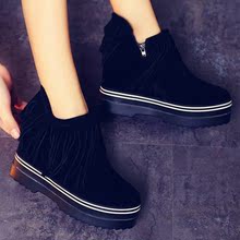 靓妞2016秋季平底休闲女短靴松糕厚底踝靴马丁靴真皮流苏磨砂单靴