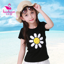 4女童短袖t恤5黑色2017新款大童儿童夏装11小女孩上衣纯棉12-15岁