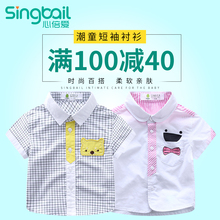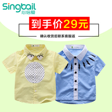 singbail2017夏装新款宝宝衬衫纯棉短袖上衣韩版翻领小童衬衫男童