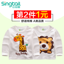 singbail宝宝长袖t恤白色男童纯棉上衣女童春装婴儿打底衫儿童装