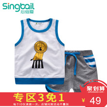 singbail夏季新品宝宝婴幼儿童装背心短裤套装男童无袖短裤两件套