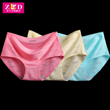 三条装印花唇印冰丝无痕中腰内裤 女士冰丝一片式性感三角裤头