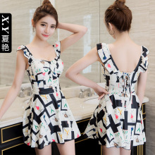 夏艳泳衣女连体平角裙式大小胸聚拢遮肚显瘦保守收腰韩国温泉泳装