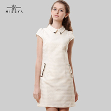 2017春装女方领水钻装饰旗袍式修身中长款提花连衣裙春秋长