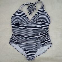 原单女士连体泳衣 百褶显瘦款系脖锦纶游泳衣成人泳装 大码游泳衣