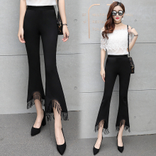 2017夏季新款韩版复古流苏微喇叭裤高腰显瘦阔腿休闲九分裤子女潮