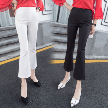 微喇叭裤女2017夏季新款松紧高腰弹力修身开叉西装裤休闲裤九分裤