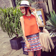 欧洲站2017夏季无袖显瘦名媛女装两件套蓬蓬短裙小清新套装半身裙