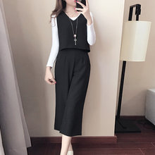 2017春装新款时尚马甲套装气质高腰韩版显瘦九分裤阔腿裤女潮春夏