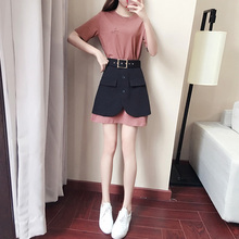 2017新款背带裙两件套夏季韩版女学生短袖学院风显瘦春秋时尚套装
