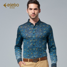 Edenbo/爱登堡丝光棉衬衫 2017春秋款 男士纯棉花卉印花长袖衬衫