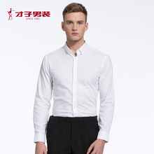 才子男装春季新款男士青年商务修身长袖白色衬衣简约休闲抗皱衬衫