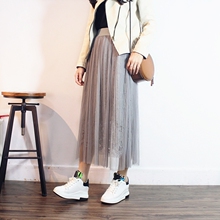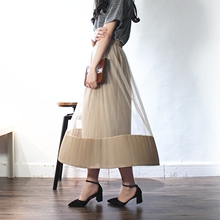 拼接网纱半身裙女春2017新款中长款百褶裙韩版纯色纱裙学生长裙子