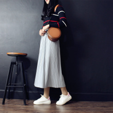 2017春装新款a字裙半身裙女高腰韩版显瘦学生条纹短裙包裙不规则