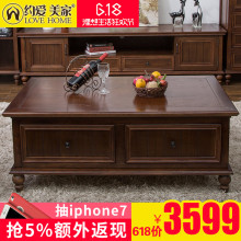 美式实木茶几简约小户型多功能升降茶几电视柜组合客厅家具整装