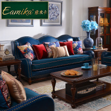 意米卡 美式沙发组合简美乡村实木欧式别墅大户型布艺沙发E1418
