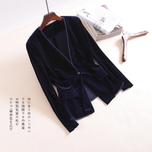 出口欧美国外贸原单好品质修身显瘦丝绒天鹅绒西装外套周迅同款女