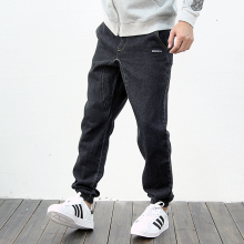 原创日系潮牌牛仔束脚裤男牛仔裤秋季纯色休闲裤直筒修身小脚长裤