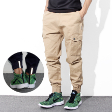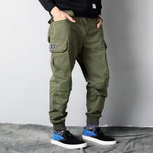 原创设计 潮牌男装 军事刺绣工装束脚裤 大码纯色修身小脚休闲裤
