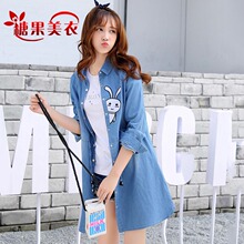 少女春秋装防晒薄款风衣外套初高中学生夏季修身牛仔连衣裙学院风