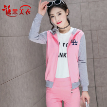 少女春装2017新款春季初中学生棒球服装韩版连帽开衫卫衣女短外套