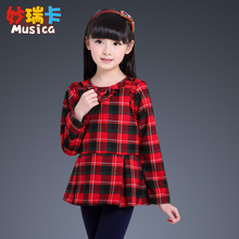妙瑞卡童装女童衬衫春秋装2017新款儿童打底衫宝宝格子中大童长袖