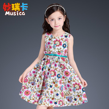 女童夏装短袖连衣裙中大童公主裙新款童装儿童裙子白底繁花淑女裙