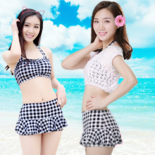 韩版新款可爱分体裙式泳衣女 小胸聚拢性感蕾丝平角游泳衣泡温泉
