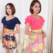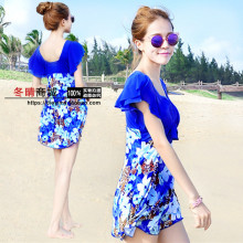2017韩国游泳衣女分体平角裤裙式小胸聚拢少女保守可爱三件套泳装