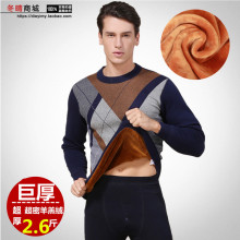 【天天特价】男士保暖内衣套装 中老年加绒加厚提花双层保暖内衣