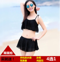 韩国泳衣女三件套分体四件裙式小胸钢托聚拢温泉泳装游衣泳比基尼
