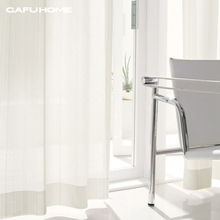 gafuhome现代时尚风精致雪尼尔植绒条纹纯白定制窗帘客厅窗纱