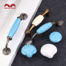 白贝壳蓝色地中海风格儿童房拉手抽屉衣橱鞋柜门陶瓷田园美式乡村