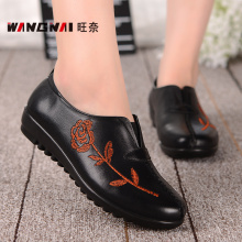 春夏款真皮妈妈单鞋民族风中老年小码女鞋防滑软底大码奶奶鞋平底