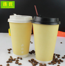 一次性纸杯加厚奶茶纸杯子打包咖啡杯带盖定做500ml/100只装包邮