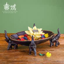 泰域 果盘 东南亚木质怀旧竹编 泰国创意吉祥四象桌面摆件托盘