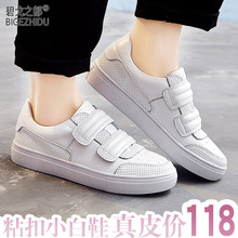 2017春夏新款魔术扣真皮小白鞋女平底运动休闲单鞋同款板鞋潮女鞋
