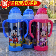 迪士尼保温杯不锈钢吸管杯婴儿水壶宝宝带手柄学饮杯儿童喝水杯子