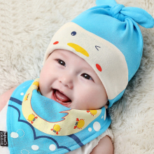 婴儿帽子口水巾套装春秋宝宝帽三角巾套头帽男女童帽无痕睡觉帽