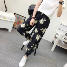 印花休闲裤女2017夏季新款大码松紧腰九分裤宽松雪纺灯笼裤沙滩裤