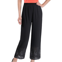 2017中老年妈妈装女装夏裤松紧腰九分裤雪纺裤镂空直筒裤休闲裤子
