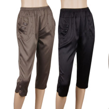 中老年女装高腰缎面七分裤修身显瘦哈伦裤宽松休闲裤妈妈装中裤夏