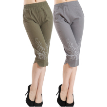 天天特价女装中老年夏装高腰松紧裤大码七分裤妈妈装双层雪纺中裤