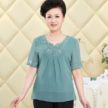 包邮母亲节大码妈妈装雪纺衫乔其丝衬衫T恤上衣绣花短袖中年女装