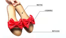清仓 时尚夏款PU皮蝴蝶结露趾低跟平底沙滩凉拖女鞋