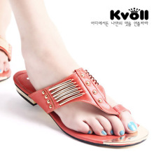 清仓 KVOLL 波西米亚风镶钻宝石褶皱松紧夹趾低跟凉拖鞋